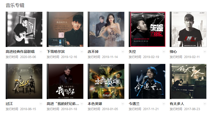 2007年11月6日,高進(jìn)發(fā)行首張創(chuàng)作專輯《江山》,歌曲《江山》在中國(guó)TOP排行榜獲得冠軍。