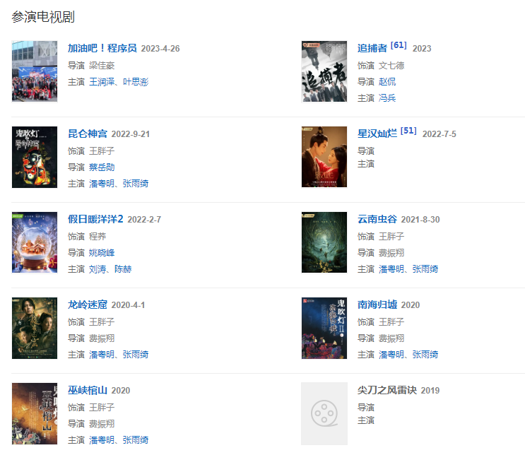 2017年,主演電視劇《伙頭軍客?!?span lang="EN-US"> ;12月8日,主演的國(guó)內(nèi)首部反電信詐騙電影《巨額來電》上映。