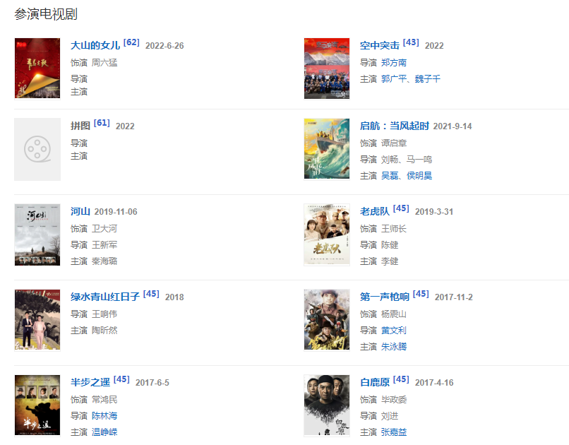 2019年執(zhí)導(dǎo)并主演電視劇《河山》。