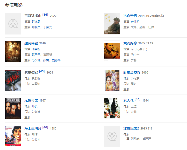 1999年參演電影《黃河絕戀》飾演黑子 、并憑此片奪得當(dāng)年第23屆大眾電影百花獎最佳故事片和第06屆中國電影華表獎優(yōu)秀故事片。