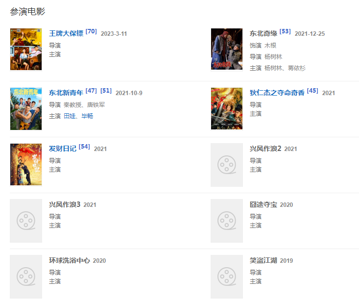 代表作品狹路相逢、羅密歐與茱麗葉、闖關(guān)東、幸??爝f