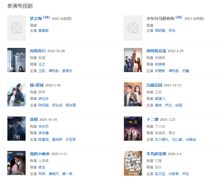 2022116日,主演的電視劇《鏡·雙城》播出;參演電視劇《請(qǐng)叫我總監(jiān)》播出。