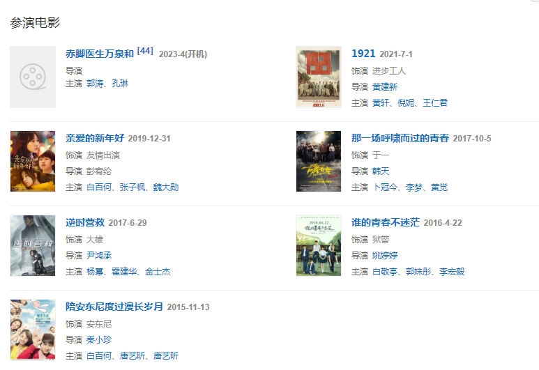 2021113日,參演的電視劇《我的小確幸》播出  。71日,參演的電影《1921》上映,在劇中飾演進(jìn)步工人。1014日,參演的電視劇《真相》,在劇中飾演宋白羽。11月,參演電視劇《向風(fēng)而行》;  參演電視劇《沉睡花園》。