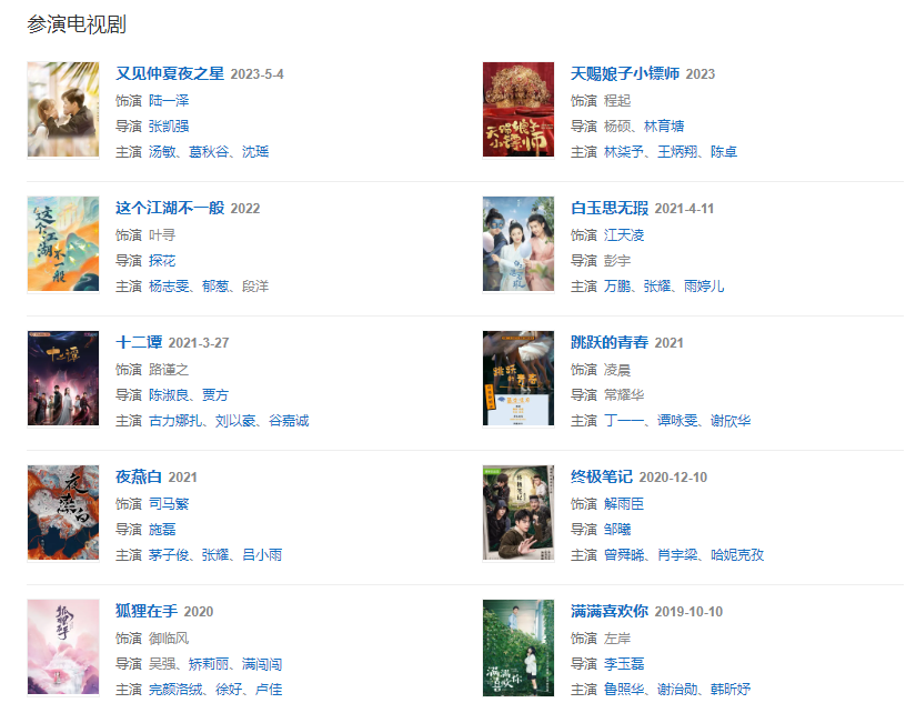 2021年3月27日,參演的民國愛情劇《十二譚》播出,在劇中飾演路謹(jǐn)之 ;