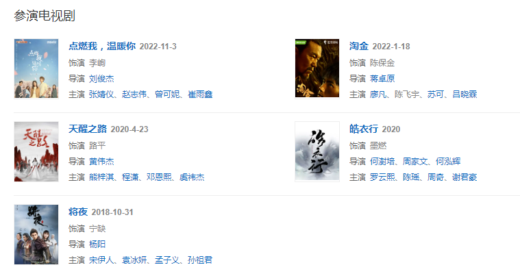 2022年11月3日,主演的青春都市情感劇《點燃我,溫暖你》播出。