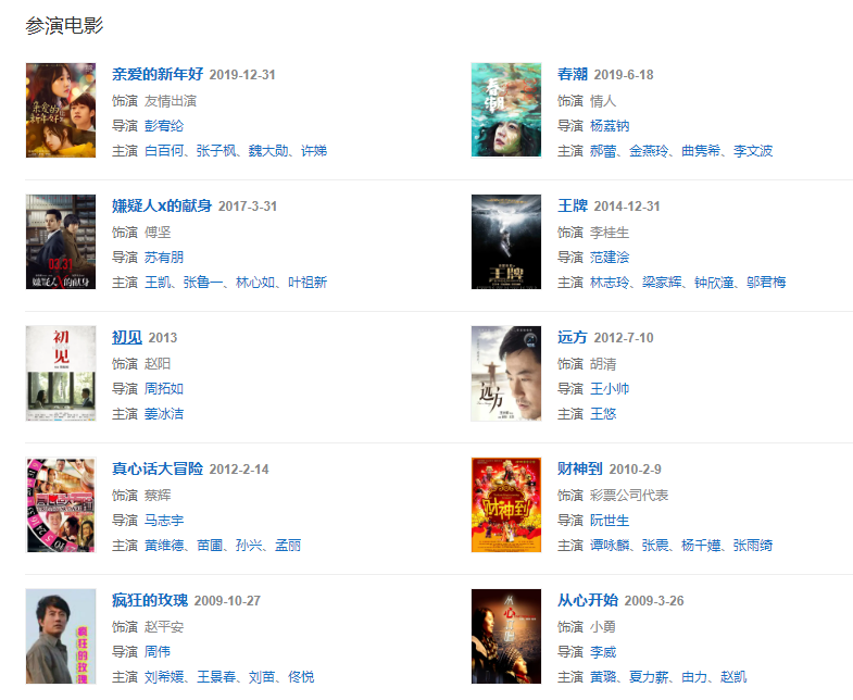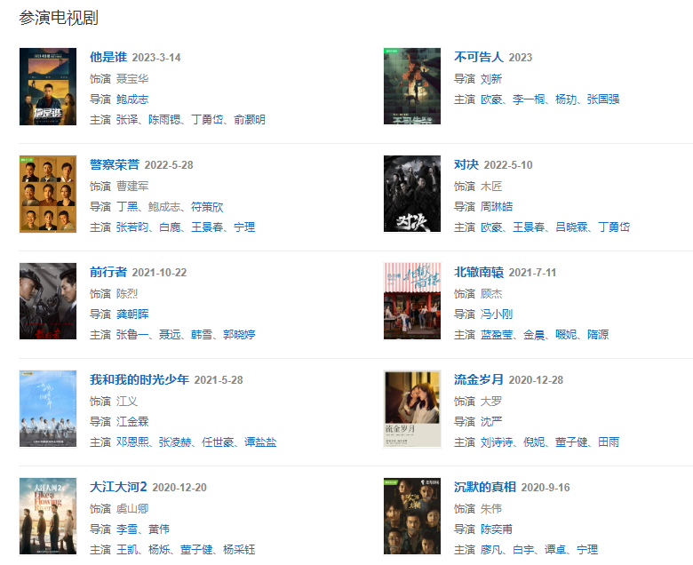 代表作品:少年包青天Ⅲ之天芒傳奇、沉默的真相、對(duì)決、警察榮譽(yù)、嫌疑人x的獻(xiàn)身、他是誰(shuí)
