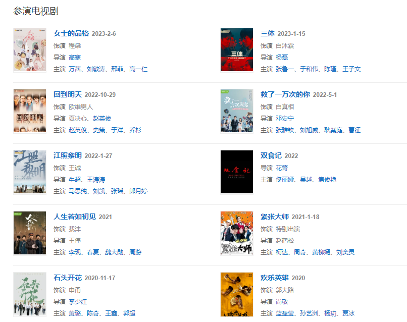 1月15日,參演的電視劇《三體》播出;