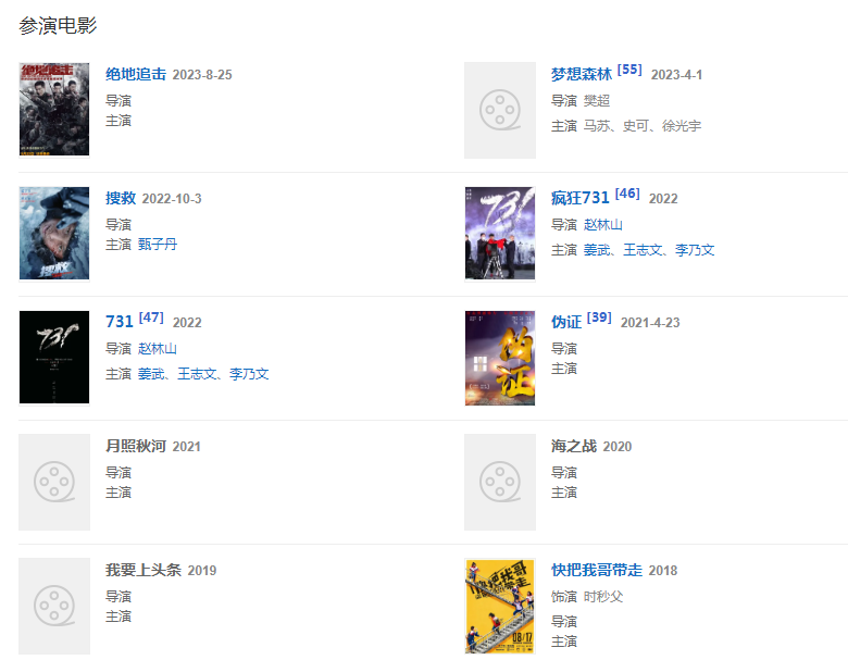 代表作品:人民的名義、紅高粱、孤軍英雄、大營救、兵變1938、八路軍