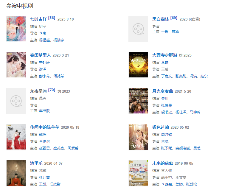 2023年3月,主演的古裝輕喜愛情劇《春閨夢里人》播出;8月,主演的甜虐仙戀輕喜劇《七時吉祥》播出。