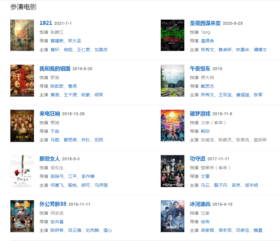 2021年,參加《2021年中央廣播電視總臺(tái)春節(jié)聯(lián)歡晚會(huì)》;4月,主演的生活劇《小舍得》在東方衛(wèi)視、央視八套上星播出。9月,主演的現(xiàn)實(shí)題材電視劇《功勛》播出,在單元?jiǎng) 秾O家棟的天路》中飾演孫家棟。