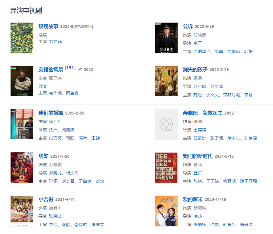 2022223日,搭檔白百何領(lǐng)銜主演的都市情感劇《我們的婚姻》播出;38日,與迪麗熱巴主演的檢察劇《公訴精英》開(kāi)機(jī);參演電視劇《好好說(shuō)話》播出。