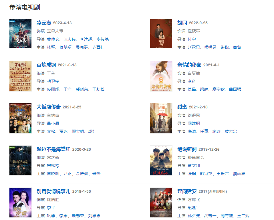 代表作品:殺青、金粉世家、一米陽光、愛本無罪