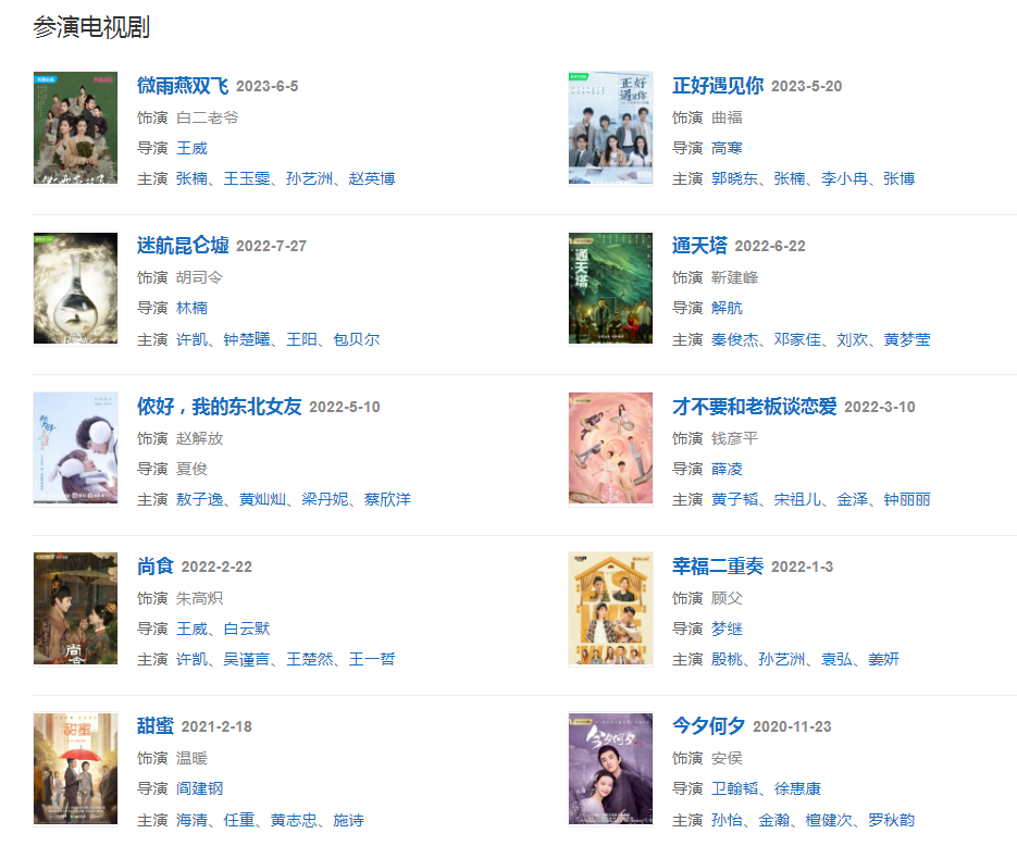 202213日,參演的電視劇《幸福二重奏》播出 ;222日,友情主演的古裝美食劇《尚食》播出;310日,友情主演的都市奇幻愛情劇《才不要和老板談戀愛》播出;510日,參演的青春校園愛情輕喜劇《儂好,我的東北女友》播出,在劇中飾演趙解放。