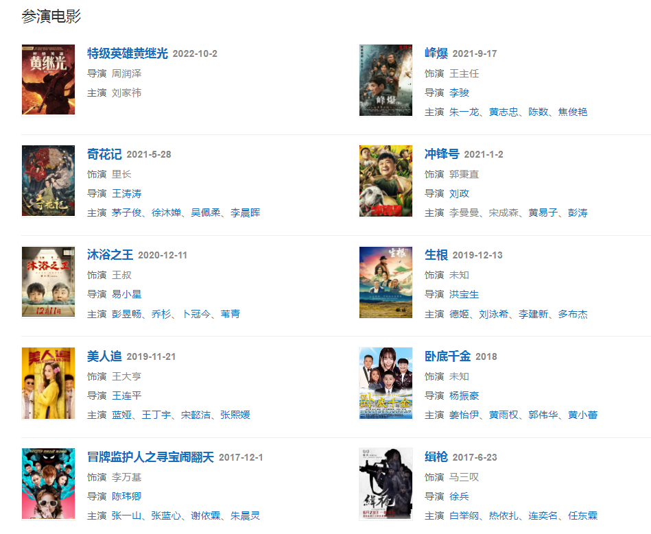 2021218日,參演的都市情感劇《甜蜜》播出;528日,特別出演的奇幻愛情電影《奇花記》在騰訊視頻全網(wǎng)獨(dú)播;917日,主演的災(zāi)難電影《峰爆》上映;參演電視劇《小幸?!贰?/span>