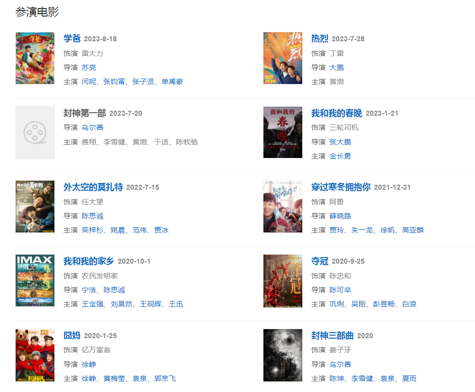 2020年主演電影《奪冠》;827日名列《2020福布斯中國名人榜》第52