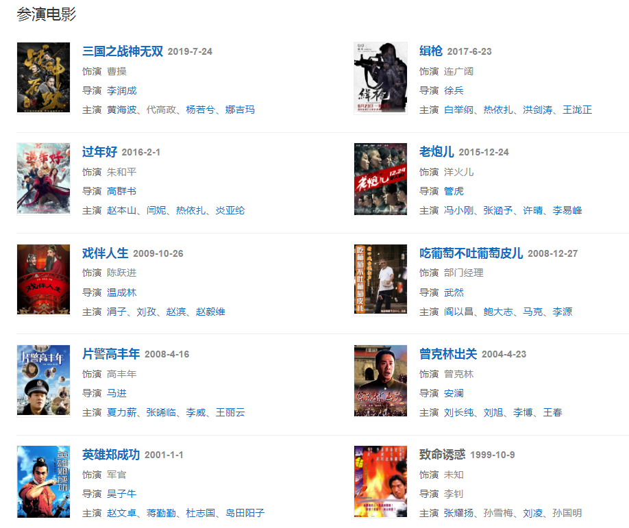 2005年,首次執(zhí)導電視劇《野火春風斗古城》,并于2007年執(zhí)導及主演了抗戰(zhàn)劇《大刀》。