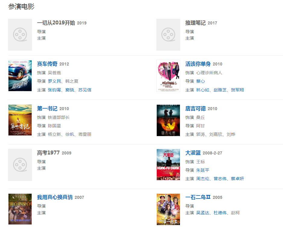 2001年,因在古裝喜劇《鐵齒銅牙紀(jì)曉嵐》中與張國立、張鐵林合作而獲得鐵三角稱號。