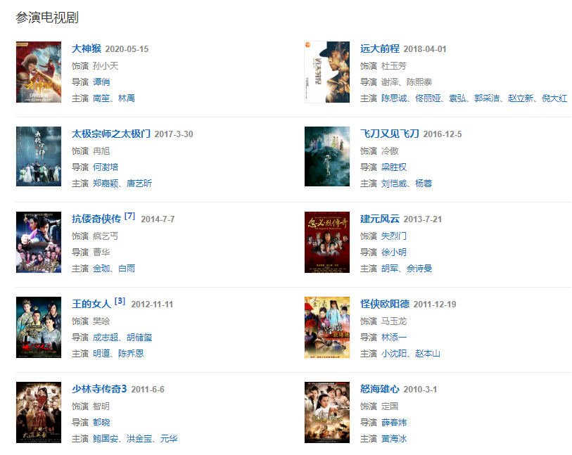 2010年,求學(xué)深造后拍攝了《少林寺傳奇》、《建元風(fēng)云》等電視劇。