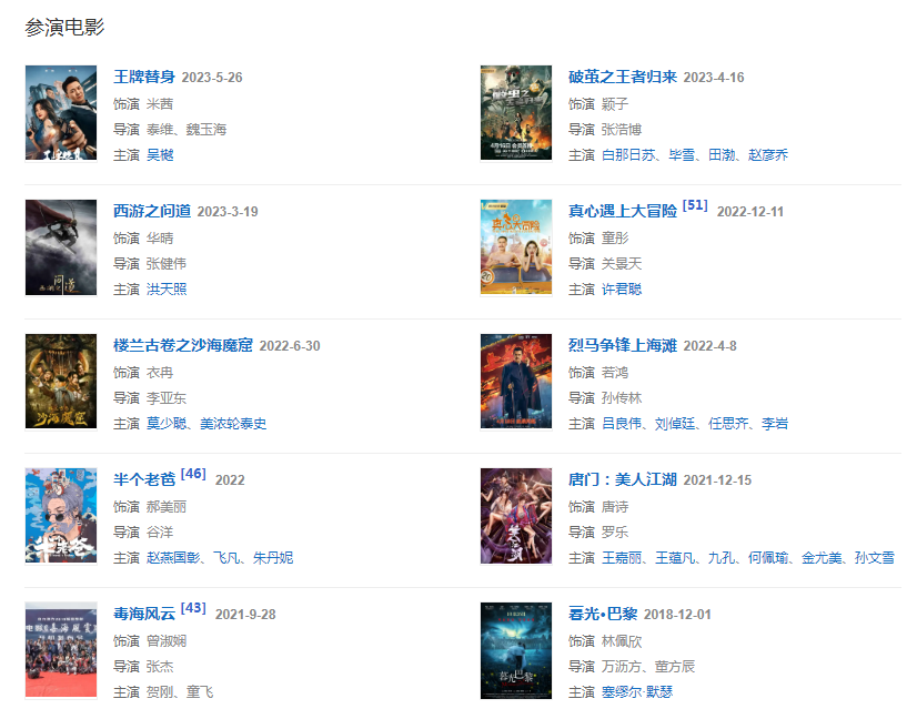 2022年4月18日,主演的民國傳奇動(dòng)作電影《烈馬爭鋒上海灘》在愛奇藝視頻獨(dú)播。
