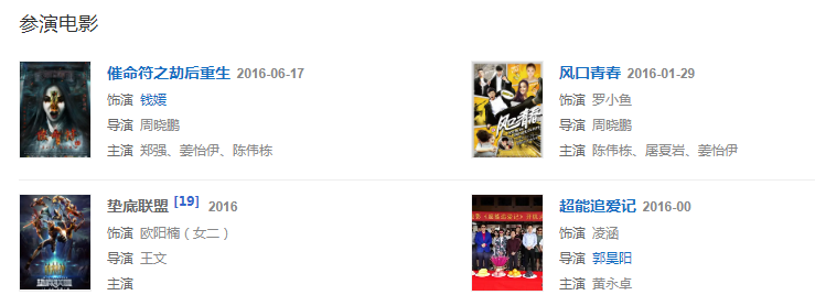 2016年1月29日,主演青春勵(lì)志片《風(fēng)口青春》,飾演80后海歸羅小魚;6月17日,主演驚悚懸疑片《催命符之劫后重生》,飾演錢媛 。