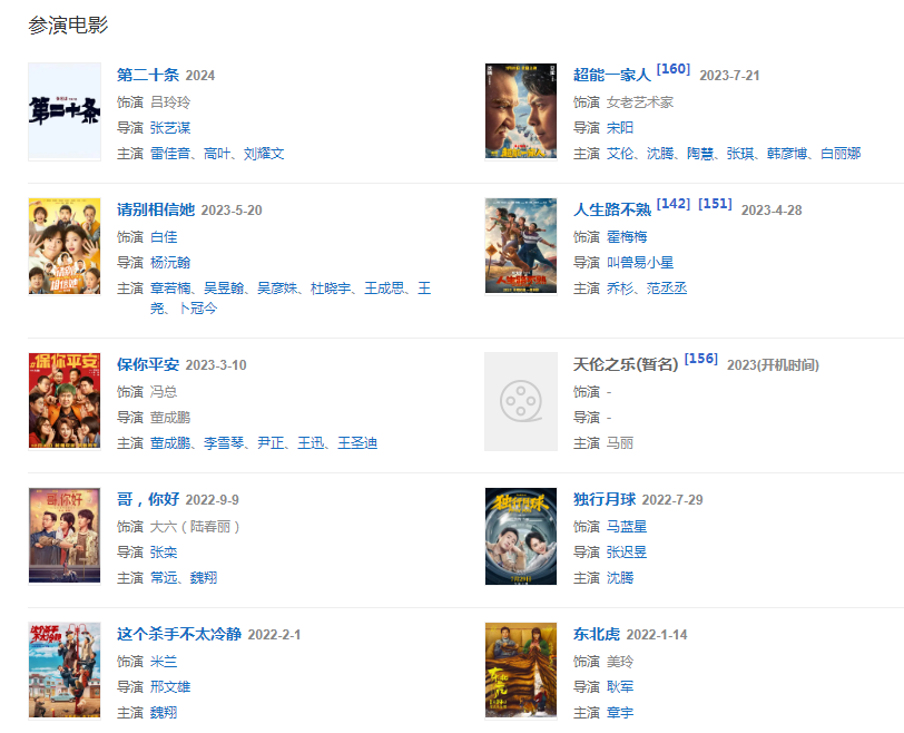 代表作品:夏洛特?zé)馈⑿咝叩蔫F拳、喵星人、一念天堂、來電狂響、東北往事之破馬張飛、逆流而上的你、測謊人、這個(gè)殺手不太冷靜