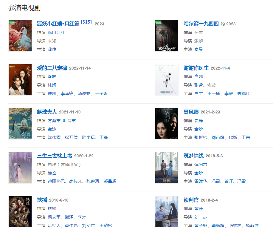 代表作品:三生三世十里桃花、宮鎖心玉、小時代、仙劍奇?zhèn)b傳三、親愛的翻譯官、我是證人、古劍奇譚、王昭君、北京愛情故事