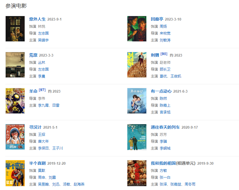 代表作品:驢得水、無名之輩、半個(gè)喜劇、我在他鄉(xiāng)挺好的、提著心吊著膽、銀河補(bǔ)習(xí)班、親愛的小孩