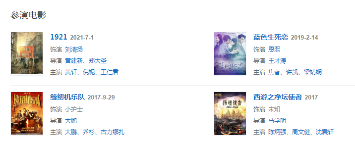 2022418日,與楊洋主演的古裝武俠言情劇《且試天下》在騰訊視頻播出,她在劇中飾演白風夕和風惜云。