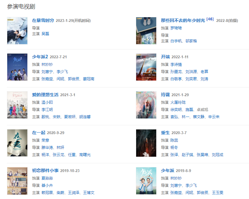 代表作品:流浪地球、我的!體育老師、少年派、小別離、初戀那件小事、開(kāi)端
