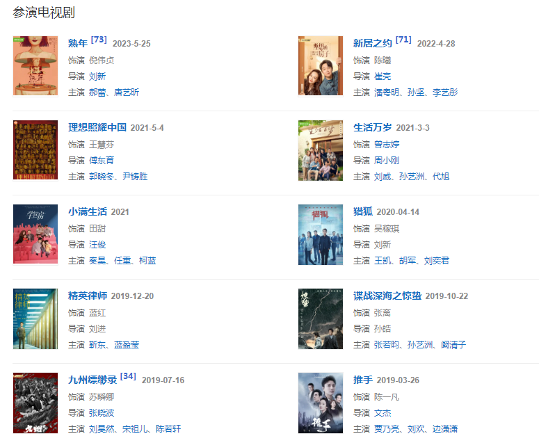 2019年10月,領(lǐng)銜主演諜戰(zhàn)劇《諜戰(zhàn)深海之驚蟄》 。11月,憑借電視劇《芝麻胡同》獲得第26屆華鼎獎(jiǎng)中國(guó)近現(xiàn)代題材電視劇最佳女演員。