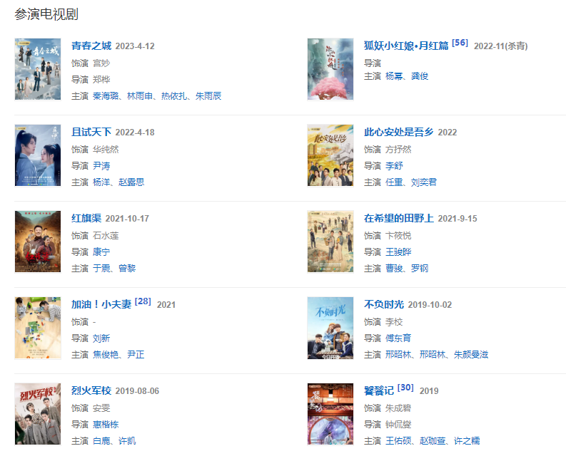2021年8月6日,參演的熱血青春勵志劇《烈火軍?!凡コ觯趧≈酗椦莅馋?;9月15日,搭檔曹駿主演的當代農(nóng)村劇《在希望的田野上》在騰訊視頻播出,在劇中飾演卞筱悅;10月17日,主演的大型史詩電視劇《紅旗渠》播出,在劇中飾演鐵姑娘隊隊長石水蓮。