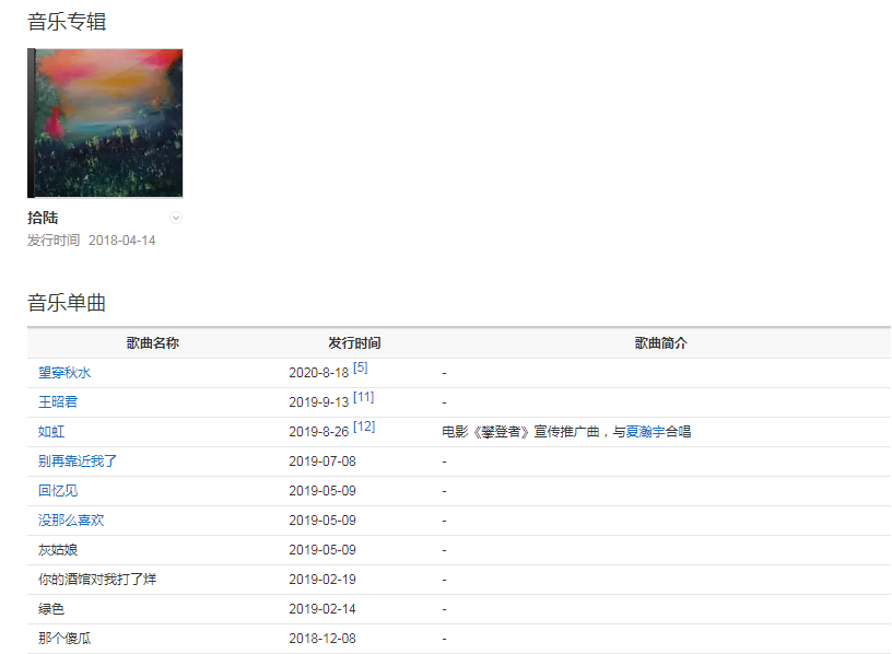 20184月,發(fā)行首張專輯《拾陸》。