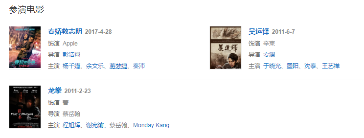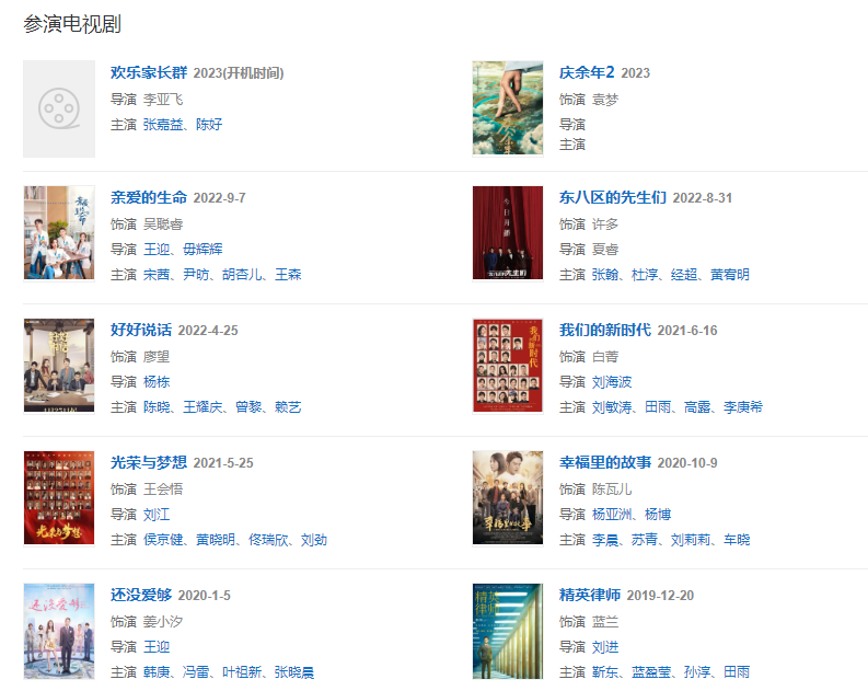 代表作品大好時光、我的!體育老師、二胎時代、我愛男閨蜜、丑角爸爸、春嬌救志明、你好喬安
