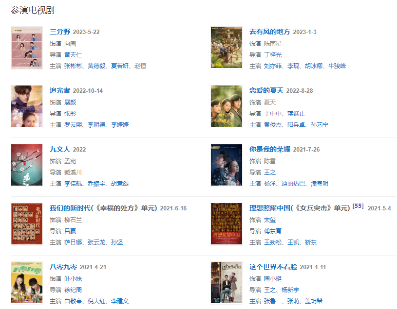 2021年,主演的都市劇《八零九零》開播  ;同年,領(lǐng)銜主演的都市勵(lì)志劇《追光者》開機(jī) 。