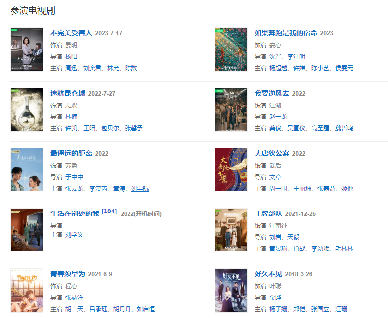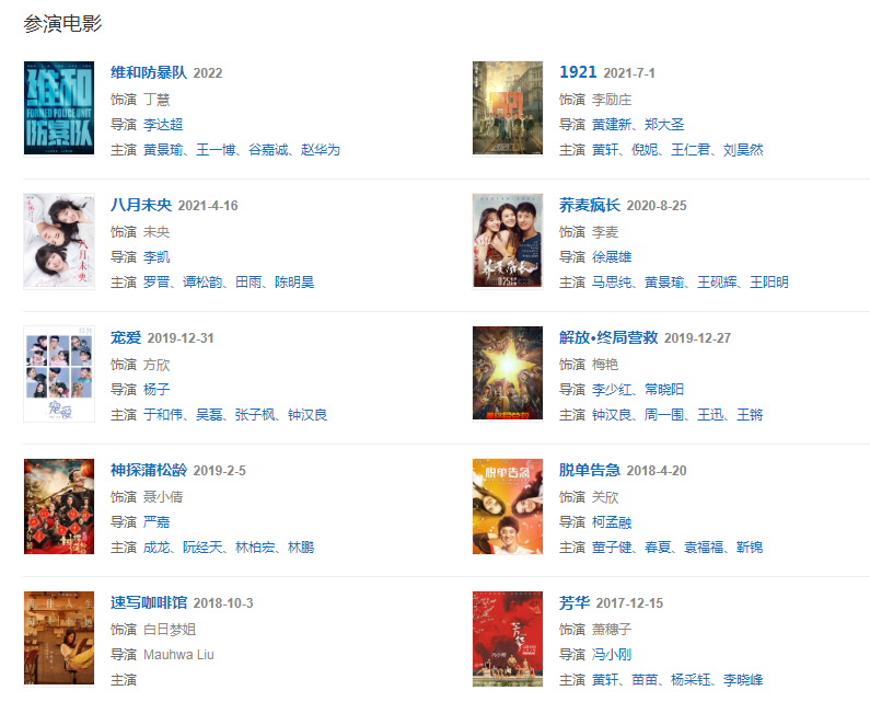 20184月,主演愛(ài)情片《八月未央》,以及創(chuàng)業(yè)題材青春劇《青春須早為》。