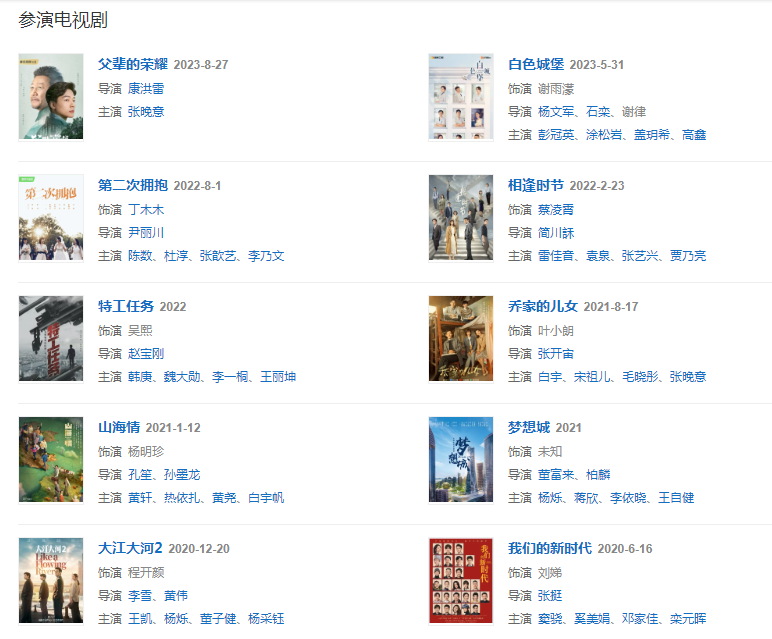 20218月,其主演的家庭劇《喬家的兒女》播出。