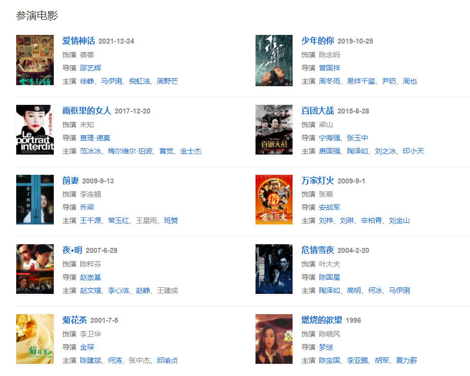 2001年,憑借電影《菊花茶》中患有先天性心臟病的青年女教師李衛(wèi)華一角獲得第8屆北京大學生電影節(jié)最受歡迎女演員獎。