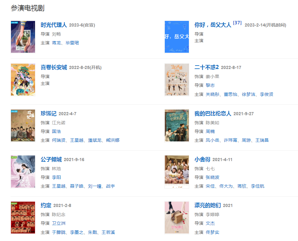 2021年4月,參演的電視劇《小舍得》播出;9月,主演的古裝輕喜劇《公子傾城》開播 。