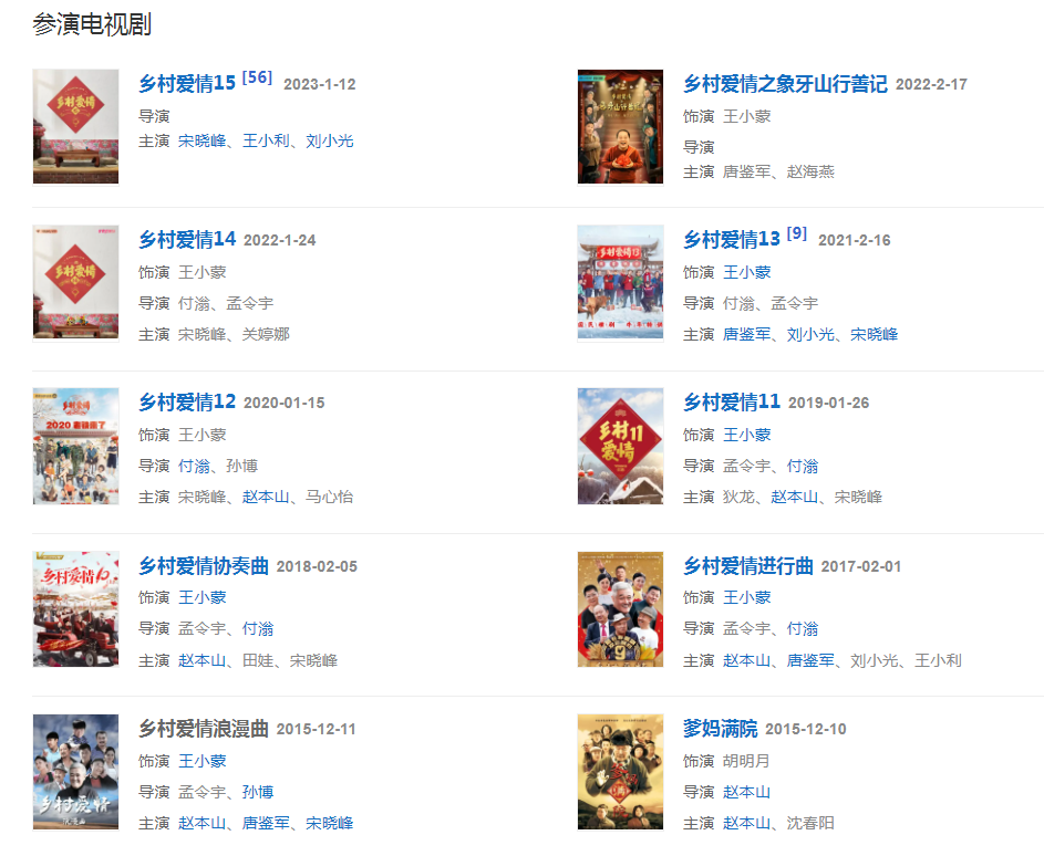 代表作品:《鄉(xiāng)村愛情故事》《大笑江湖》《怪俠歐陽德》《誰是真英雄》