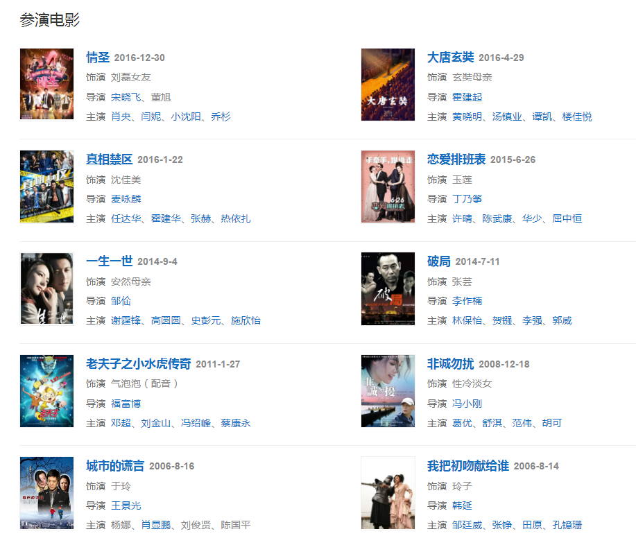 2010年,憑借愛情喜劇片《非誠勿擾》獲得第30屆大眾電影百花獎最佳女配角提名和第十九屆金雞百花電影節(jié)最佳女配角提名。