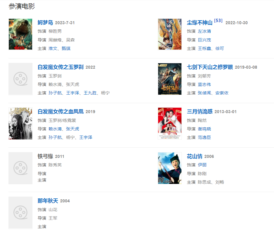 2003年開(kāi)始出演影視作品,在電視劇《激情燃燒的歲月2》飾演“肖清白”;