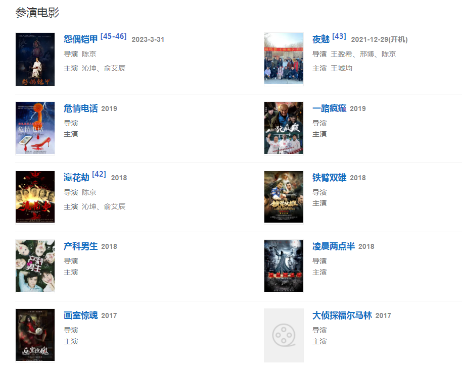 代表作品:終極底牌、搜神記、一個和八個、流淚的新娘、親愛的婚姻、七月半之恐怖宿舍、租婚男女