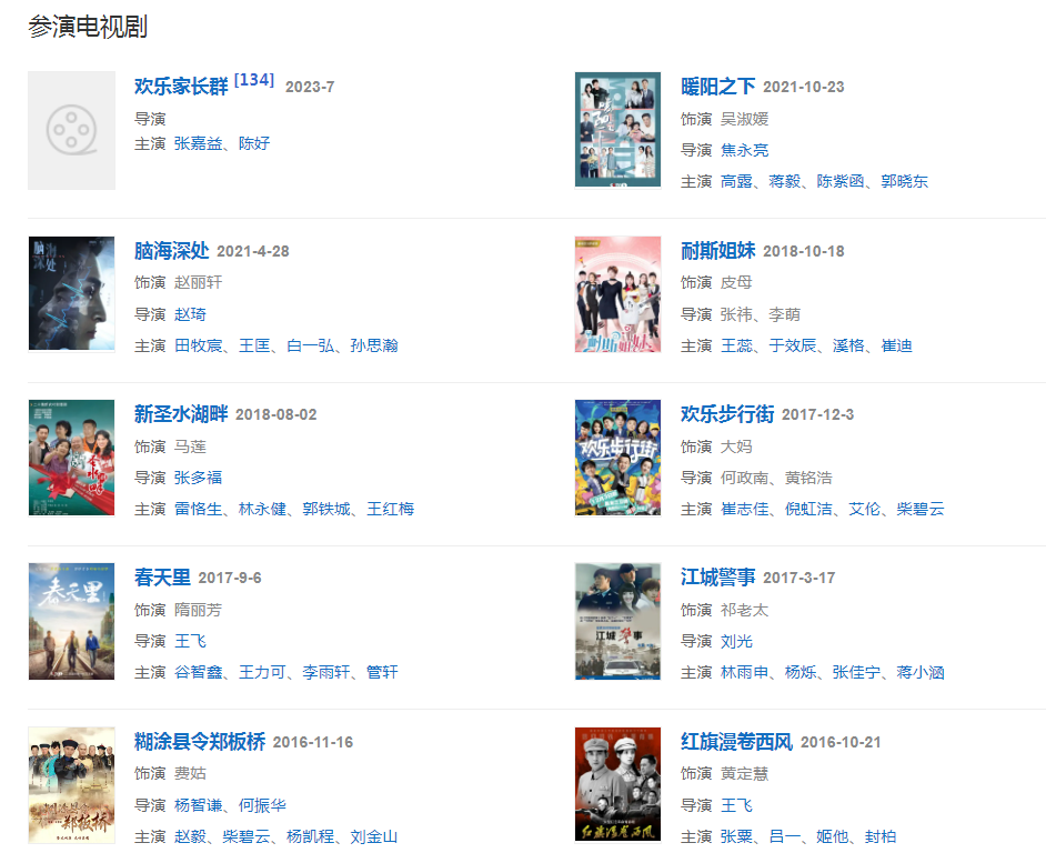 2021428日,方青卓主演的電視劇《腦海深處》播出;1023日,主演的由焦永亮執(zhí)導,高露、蔣毅領銜主演的都市劇《暖陽之下》登陸央視八套播出,在劇中飾演吳淑媛。
