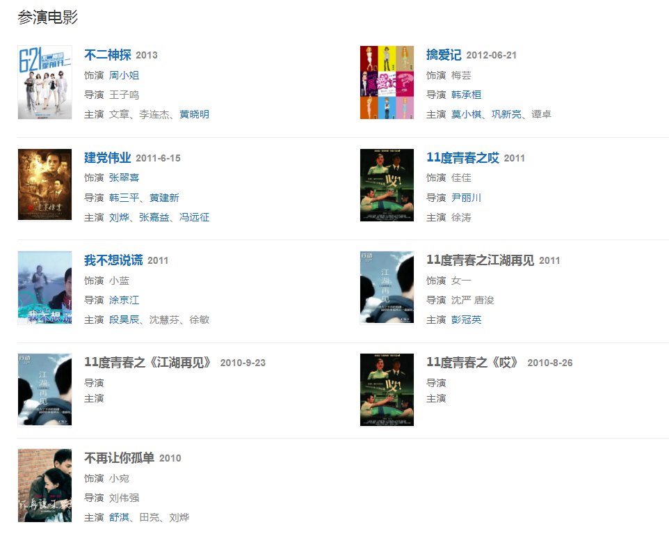 2010年出演網(wǎng)絡劇《11度青春》系列走紅  。