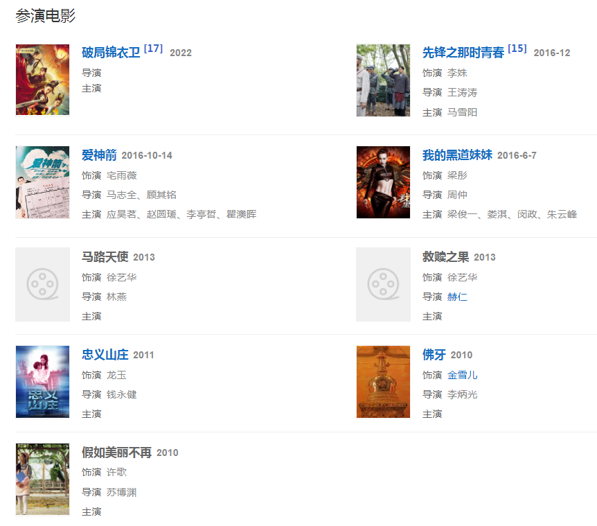 2013年,參演電影《馬路天使》飾演林燕女一號。