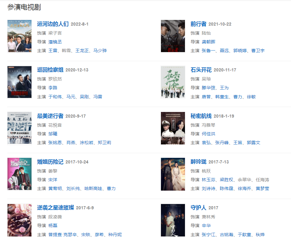 2020109日,電影《驚天救援》宣布主演陣容,韓雪領(lǐng)銜主演。1213日,主演的電視劇《巡回檢察組》播出。在劇中飾演羅欣然。