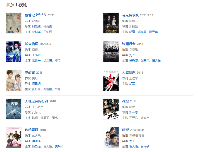 2016年主演古裝玄幻劇《青丘狐傳說》;同年,主演革命戰(zhàn)爭劇《燃情大地》。