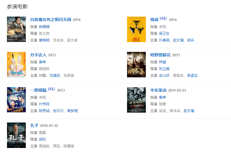 代表作品:丑女無(wú)敵、華麗一族、寶蓮燈前傳、給野獸獻(xiàn)花、孔子春秋、盤(pán)龍臥虎高山頂