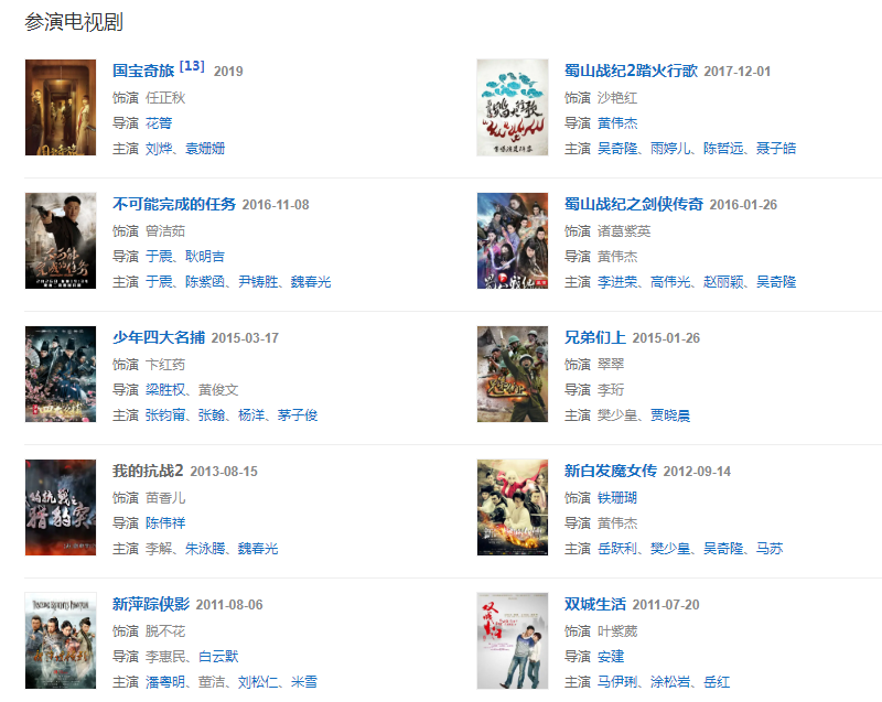 2015年,主演武俠劇《蜀山戰(zhàn)紀(jì)之劍俠傳奇》;
