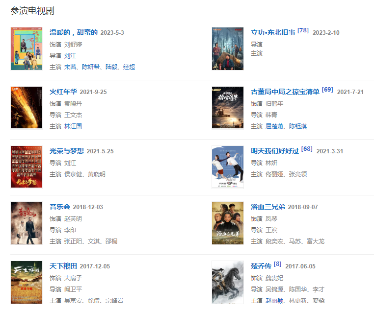 2021年5月25日,出演的重大革命歷史題材劇《光榮與夢想》在北京衛(wèi)視、東方衛(wèi)視及騰訊視頻、愛奇藝、優(yōu)酷同步播出;9月25日,與林江國主演的工業(yè)史詩劇《火紅年華》在央視一套播出。
